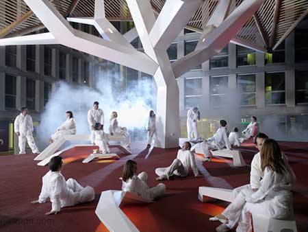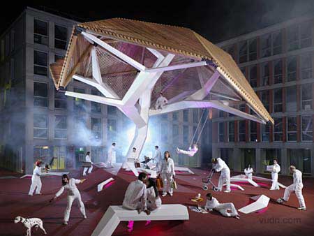 在夜間的傘蓋和下側(cè)的座位是發(fā)亮的,安裝由電腦控制的發(fā)光二極管。