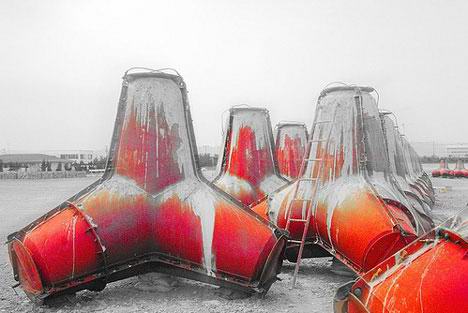 超過一半的日本海岸線都用這些四腳水泥柱或其他形狀的水泥塊來作修正,防止海水侵蝕腐蝕,雖然人們?cè)u(píng)價(jià)不一,從財(cái)政到環(huán)境到安全,但是從圖片上看,你可以體會(huì)到“多就是美”。