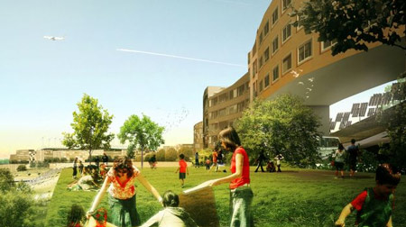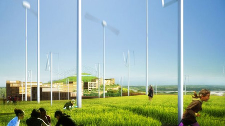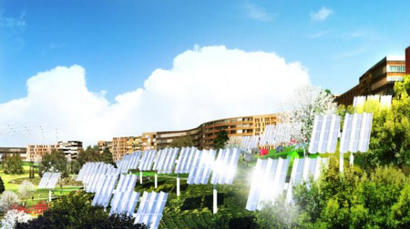 荷蘭建筑師MVRDV和西班牙建筑師GRAS聯(lián)手打造西班牙第一環(huán)保城。整個城市依山而建,所有能源都來自太陽能和風(fēng)力。