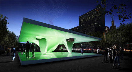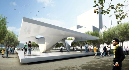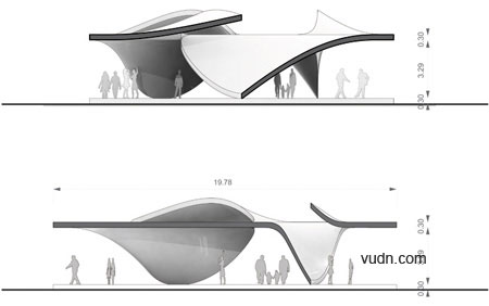 荷蘭建筑師Utudio為芝加哥千禧公園設(shè)計的臨時涼亭。這個結(jié)構(gòu),與扎哈哈迪德設(shè)計的另一個涼亭一起,將于6月19日至10月31日在公園展示。涼亭將慶賀1909年芝加哥設(shè)計圖的百年慶典,也叫伯納姆設(shè)計,這個規(guī)劃出各個方向來推動城市發(fā)展的設(shè)計圖。