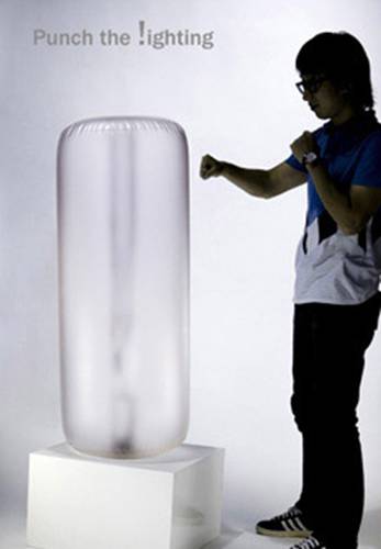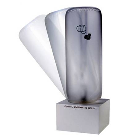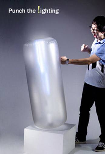 這個像倒置的沙袋一樣的東西其實是一款落地燈。它的獨特之處并不僅僅在充氣的設(shè)計上,還在與它特殊的點亮方式。要點亮它,你不斷的用力擊打它——真是夠欠揍的!