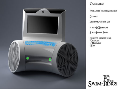這個游泳池電腦戒指的感念,使你可以在享受水腫樂趣同時,同樣可以進行電腦操作,游客可以通過這個電腦看電影,聽音樂打游戲和輕松上網(wǎng)收發(fā)點在郵件,而且在桌子上可以當普通的電腦使用!