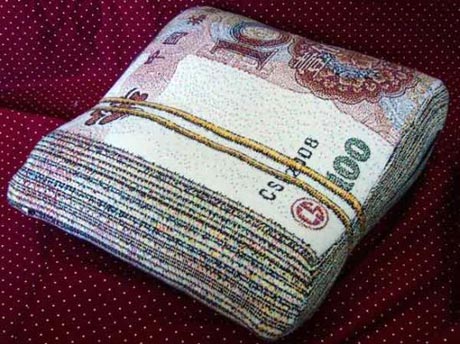 無(wú)論如何我們不能否認(rèn)錢在現(xiàn)實(shí)生活中的作用。也有不少人夢(mèng)想數(shù)錢數(shù)到手抽筋,睡覺睡到自然醒。那么能不能變換一下,讓你睜著眼跟錢抱在一起,做夢(mèng)也跟錢抱在一起呢?那紅色鈔票是那么的誘人那么的熟悉,而又那么的不夠用。哈,這就是百元鈔票抱枕的創(chuàng)意了。沒啥技術(shù)含量,只是在人性上稍加挑撥,不由得咱們不垂涎三尺!小編我真的好想要一個(gè),不是拜金主義而是手上抱著,心理就是有一種格外的舒服、滿足、踏實(shí)。相信您能理解我這個(gè)小人物的感受吧……哈哈,哪位朋友發(fā)現(xiàn)有賣這百元鈔票抱枕的趕緊告訴我們啊。
