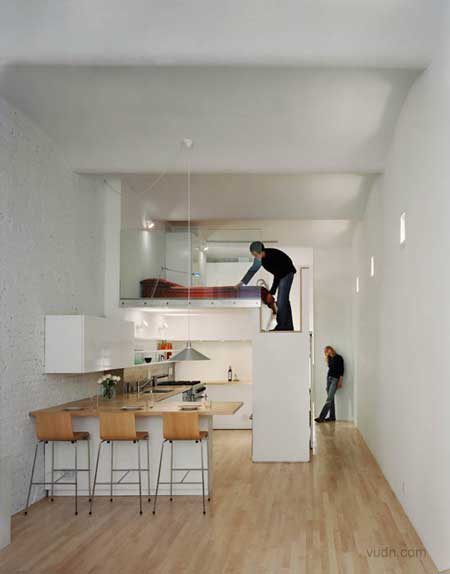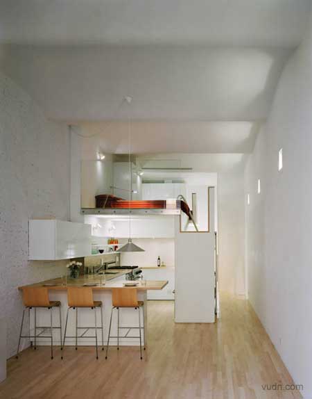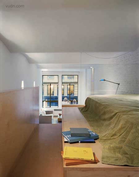 紐約Interlocking公寓室內設計?;炷凉靶翁旎ò逵衅鸱?,兩平臺是由一個L形的T型臺交叉,盤旋組成壁櫥,從客廳到入境大堂,創(chuàng)造一個連續(xù)的視覺流動,而加劇了獨特的功能, 所有的水平表面和T型臺覆蓋著楓樹木材,而其余的垂直表面漆成白色。一個清晰的玻璃分割劃分的休息區(qū)域,采用自然光照明,創(chuàng)造舒適的空間。