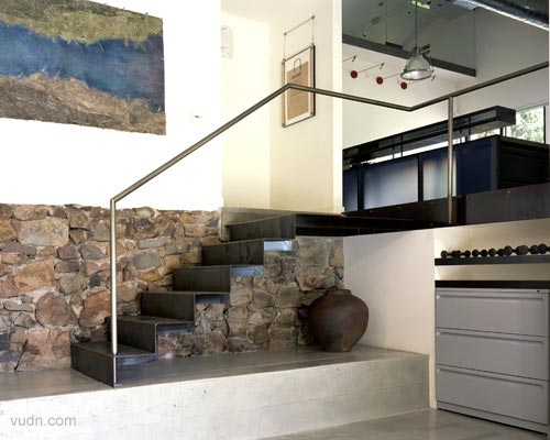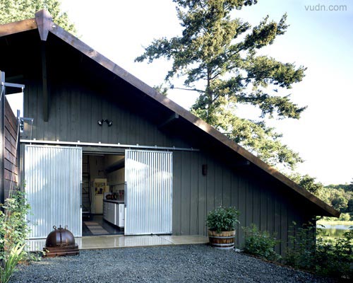 改裝一個(gè)老谷倉成為一個(gè)度假山莊。簡潔的外觀覆蓋了錯(cuò)綜復(fù)雜的內(nèi)部細(xì)節(jié)。每平方英寸的空間都被利用,從新酒窖到閣樓,以及樓梯下空間改為新茶水間 。整體效果就是一個(gè)現(xiàn)代派室內(nèi)被包裹在溫和的老谷倉里。