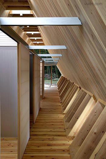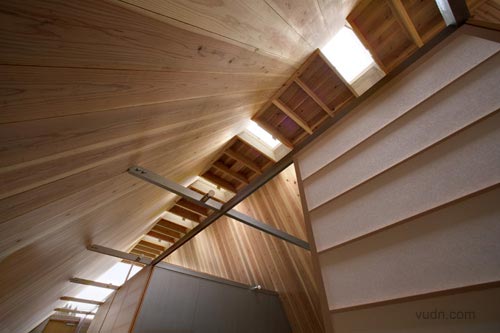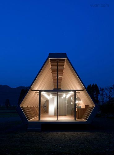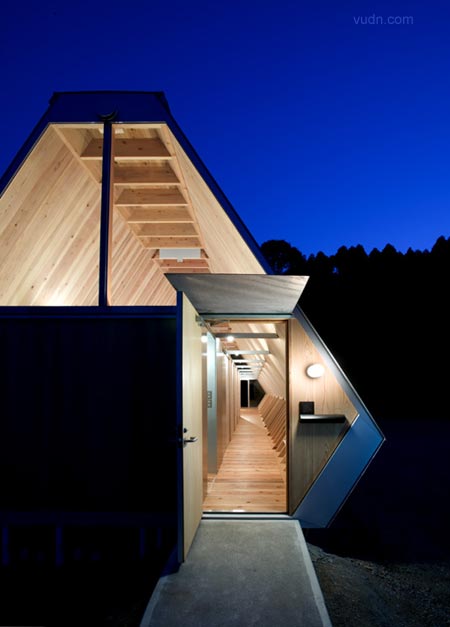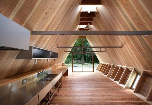 小木頭房子是專為老夫婦坐落在鄉(xiāng)村的房屋設(shè)計(jì)。設(shè)計(jì)的目的是有限的成本要?jiǎng)?chuàng)造最大容積,并房屋與周圍的環(huán)境融合。因?yàn)樵摰貐^(qū)是著名的雪松木材生產(chǎn)地,決定用厚厚的杉木板的作為結(jié)構(gòu),這是可以達(dá)到比較低的成本和高的品質(zhì)。