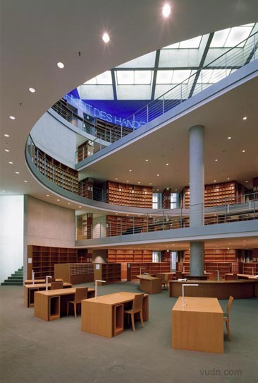 德國(guó)聯(lián)邦議院在柏林的國(guó)會(huì)圖書館室內(nèi)設(shè)計(jì)。獲得了國(guó)際設(shè)計(jì)獎(jiǎng)項(xiàng),特點(diǎn)為設(shè)計(jì)藝術(shù)與實(shí)用相結(jié)合。