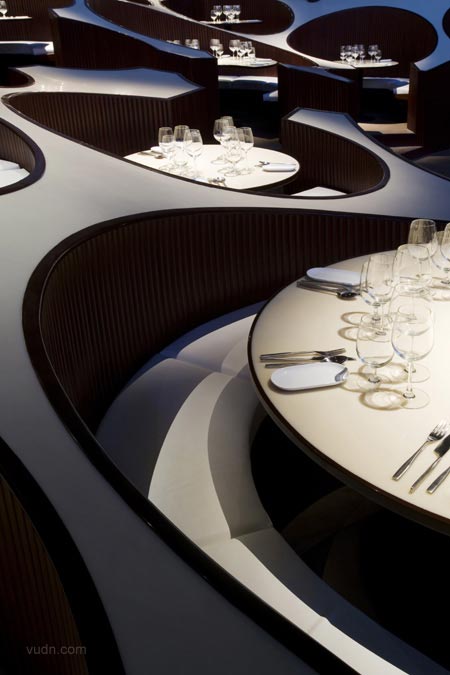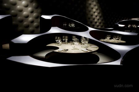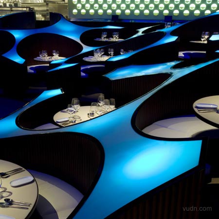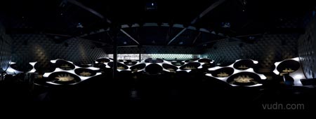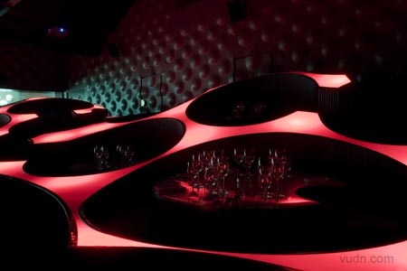 印度孟買藍(lán)蛙休閑酒廊被用來作為一個(gè)音樂場(chǎng)館,一個(gè)復(fù)雜的錄音工作室,一家餐廳,酒吧和現(xiàn)場(chǎng)音樂演奏的場(chǎng)地。不同大小的圓柱亭座椅之間容納4和10人,并安排在不同的高度,以便錯(cuò)開各級(jí)高度的觀賞視線。反射燈光的8毫米壓克力板,反射出不同的燈光設(shè)計(jì)。崎嶇不平的觸感墻壁有助吸納噪音。