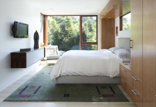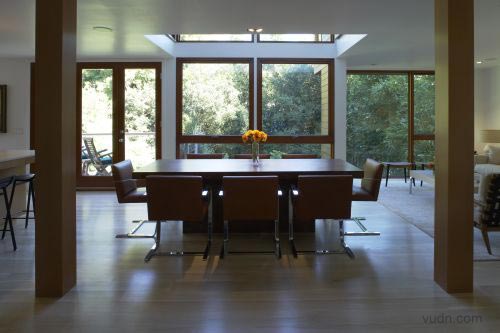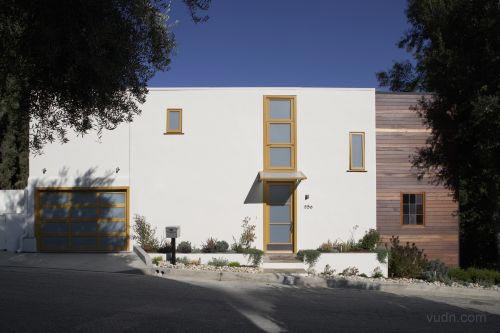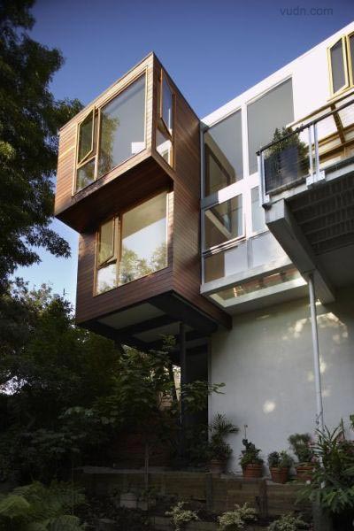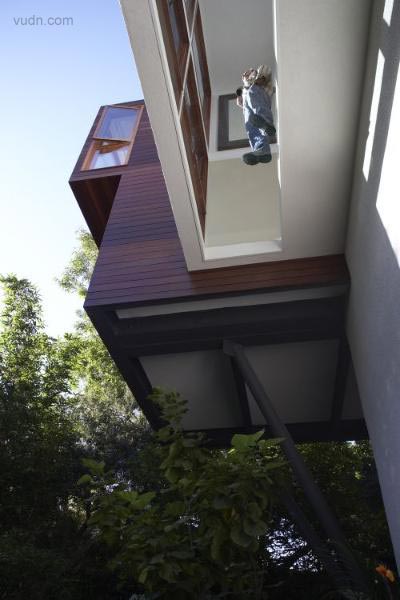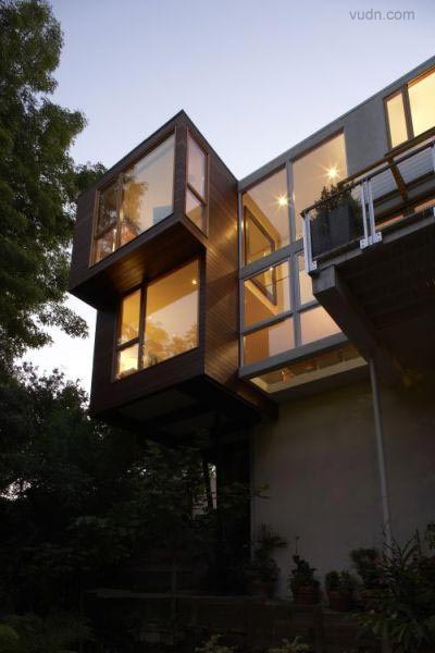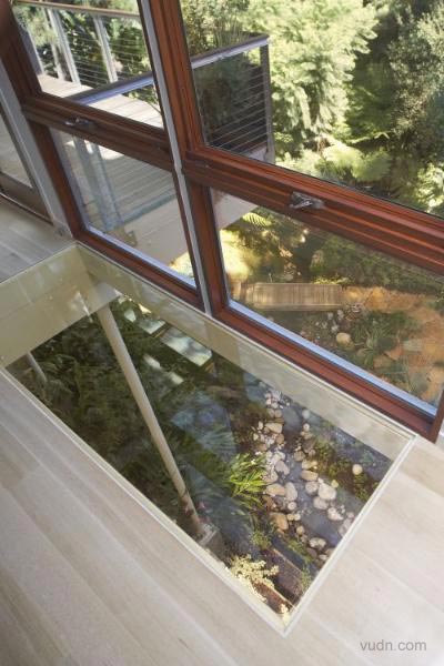 位于山坡上的別墅,巧妙的設(shè)計(jì)使房子形成峭壁的感覺增加了使用面積。天窗的大量應(yīng)用自然的采光,在陽臺(tái)使用透明的玻璃地板,可以鳥瞰腳下的溪流等自然景觀。把房屋和自然景觀融合在一起。
