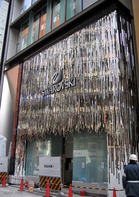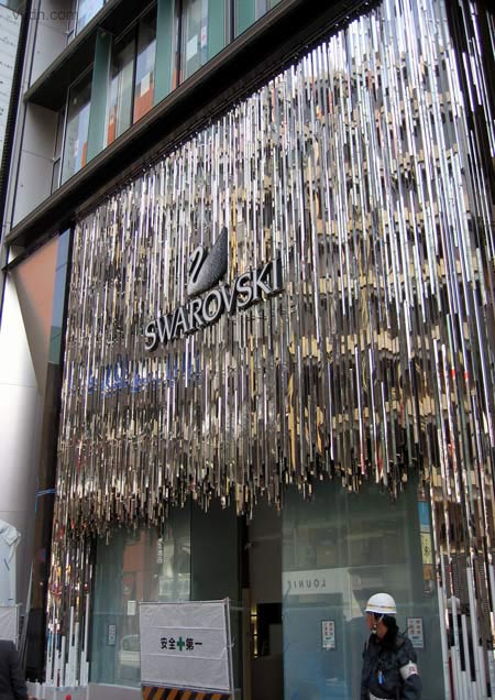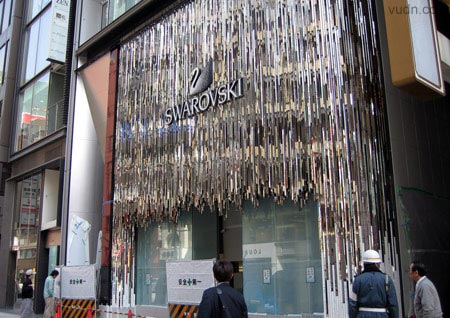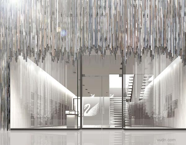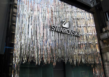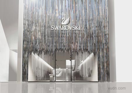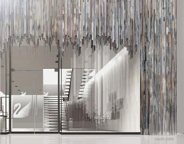 由Tokujin Yoshioka(吉岡?勻?設(shè)計(jì)的在東京銀座施華洛世奇旗艦店“水晶森林”,不銹鋼件材質(zhì)外觀反射出璀璨的光芒,作為店鋪的關(guān)鍵要素,門面上覆蓋著不銹鋼鏡面浮雕。從不同角度和閃耀著光芒猶如一個(gè)“水晶森林”反映了不同的場(chǎng)景。 商店內(nèi),墻壁上裝飾著白色浮雕,整個(gè)空間閃耀燦爛。,吊燈發(fā)出像晴天瀑布的光芒,像一個(gè)虛幻的空間。