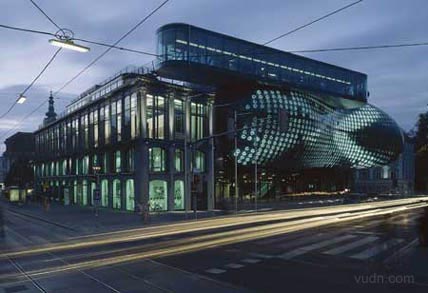 位于奧地利城市格拉茨的新藝術(shù)館,以“友善的外星客”聞名。它是一個(gè)風(fēng)格激進(jìn)的建筑,向建筑常規(guī)提出了多項(xiàng)挑戰(zhàn)。該建筑的獨(dú)到之處,其一,對于格拉茨城市歷史文脈的挑戰(zhàn)--該市為聯(lián)合國教科文組織認(rèn)定的“世界遺產(chǎn)城"”,亦為2003年歐洲文化之都。其二,對于博物館設(shè)計(jì)傳統(tǒng)的挑戰(zhàn)。其三,復(fù)雜的生物幾何設(shè)計(jì)是技術(shù)上的挑戰(zhàn),最后,則是給予來訪者體驗(yàn)上的挑戰(zhàn)--為建筑的驚人外表所誘,人們愿意探索藝術(shù)館里面的奧秘而走進(jìn)它。