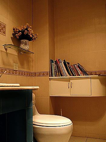 我的衛(wèi)浴間。除了色彩,樣式的搭配我很重視實用功能和生活情趣,如廁的時候看報看書是所有人都愛做的事情,我干脆就直接設(shè)計書架進(jìn)來,遠(yuǎn)離淋浴的位置。這里看書不只是安靜還那么的放松..... 這么多年下來,我都陸續(xù)的看了好多本書了。推薦大家都這么去設(shè)計。需要注意的是不要長時間賴在馬桶上,如果看到精彩處可以出來到書房接著看嘛,不然會引發(fā)某些疾病.....