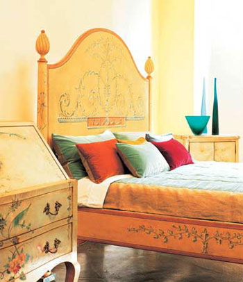 這些手工繪制的家具,大到床、衣柜、酒柜、餐桌等大件家具,小到邊桌、花架、花瓶、燭臺(tái)、燈件、梳妝鏡等小型配飾,由于其獨(dú)特的視覺美感,洋溢著親切自然,而受到越來越多人的關(guān)注。