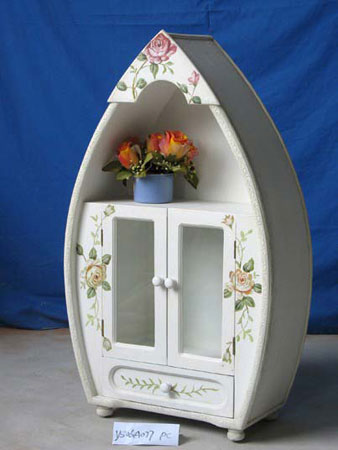 它的具體表現(xiàn)形式是于實(shí)木或板木結(jié)合的木材上手工描繪山水、仕女、花草、抽象文字符號(hào)等圖案,加之粉飾做舊漆或開裂漆,營造出整體家具的古典浪漫或鄉(xiāng)村民俗風(fēng)格。發(fā)展至今,它的繪畫主題逐漸靠近花鳥蟲魚圖案,有意味形式的象征畫面逐漸淡出,逐漸向主流風(fēng)格靠攏。