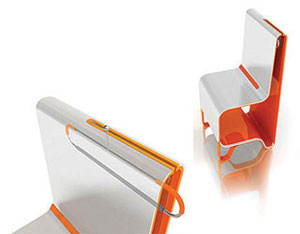 這款2007德國(guó)紅點(diǎn)設(shè)計(jì)大獎(jiǎng)的獲獎(jiǎng)作品——“附帶衣柜的椅子”,就是在椅子后面設(shè)計(jì)了一個(gè)夾層,這樣就可以將衣服掛在衣架上,然后直接推入夾層就OK了