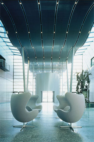 雅格布森1902年出生于哥本哈根,1928年從哥本哈根藝術(shù)學(xué)院畢業(yè)。從1930年至1971年去世,他一直致力于自己的設(shè)計(jì)事業(yè)。它的作品呈現(xiàn)出一種"批判的地方色彩",是傳統(tǒng)手法與功能信條的沖撞。概念還加上了雅格布森個(gè)人的審美情趣,從而使其每一個(gè)作品均具有適合的尺度,細(xì)節(jié)和意念。他還為自己的大部分建筑作品設(shè)計(jì)家具和配件,對(duì)作品,他注重細(xì)節(jié),材料的選用,傳統(tǒng)與實(shí)用的結(jié)合,從而產(chǎn)生概念與形式。