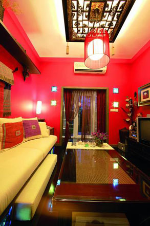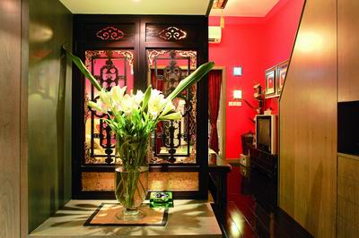 屏風(fēng):濃墨重彩的屏風(fēng),極富女性氣質(zhì)。誰曾想以前它們只是掛在墻上的裝飾,現(xiàn)在卻起到隔斷空間的大用處。一張小案,方便主人回來隨手放下鑰匙、皮包。