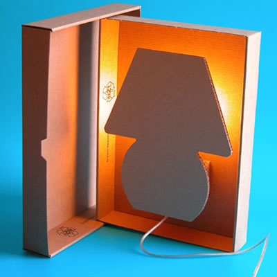 甜蜜的家(SweetHome),由A4紙大小的紙箱,和燈罩造型的紙板,還有隱藏其中的一個(gè)節(jié)能燈泡組成。下面有開燈的樣子,很溫暖,很和諧……