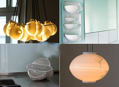 從某種意義而言,也許我們可以將瑞士設(shè)計師LauraPregger歸類為“怪人”。這是因為,和大多數(shù)人不同,這位同志長期以來對鍋碗瓢盆保持著新鮮和熱情,并將之融入他的設(shè)計生活。于是,現(xiàn)在我們看到了這組獨具創(chuàng)意的設(shè)計,在這里,餐具堂而皇之地爬上了吊頂墻頭,搖身一變?yōu)槲覀兪煜s又不熟悉的東西。
