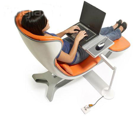 設計師Manuelsaez設計的這款電腦桌我相信大家都會喜歡的了。此款電腦桌具備了現(xiàn)代化的休閑椅和奧斯曼帝國的人體工程學的設計,并且有助于防止不適及可能的長期使用筆記本電腦不健康的姿態(tài)。非常的適合舒適型家庭辦公使用。我太喜歡這款設計了。