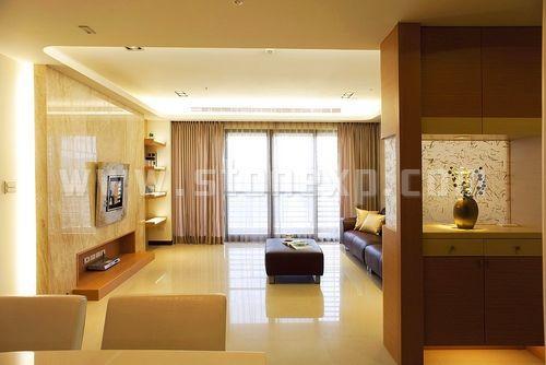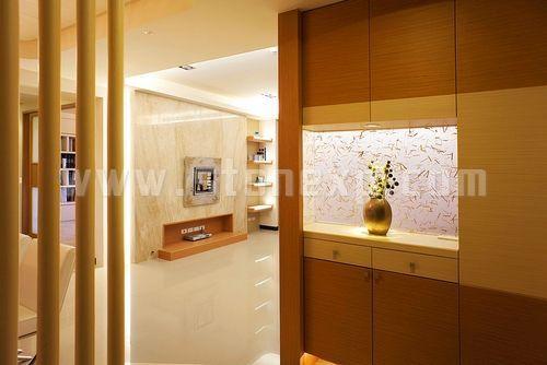每個(gè)人對(duì)于家的想像都有所不同,運(yùn)用建材、色彩、線條,以美學(xué)組構(gòu)出適情適性、令居住者愉快而自在的理想居所,就是室內(nèi)設(shè)計(jì)師存在的價(jià)值與意義了。本案一進(jìn)門(mén),左側(cè)以圓柱格柵作為與餐廳場(chǎng)域的區(qū)隔,前方進(jìn)入客廳之前,則是一座中段鑲嵌著藝術(shù)玻璃的雙色柜體映入眼簾,這個(gè)玄關(guān)柜具有收納鞋子及屏風(fēng)造型的雙重效用,藝術(shù)玻璃讓光線的穿透更細(xì)緻優(yōu)雅,而且柜體角度修飾為弧線,視線順著向上,發(fā)現(xiàn)連天花的造型也延續(xù)弧的符號(hào),蜿蜒于頂上,勾勒空間柔軟的線條張力。