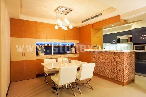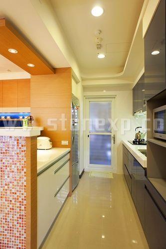 一字型的廚房在動(dòng)線及電器柜的安排上毫不馬虎,多了料理餐臺(tái),做菜更為便利流暢。