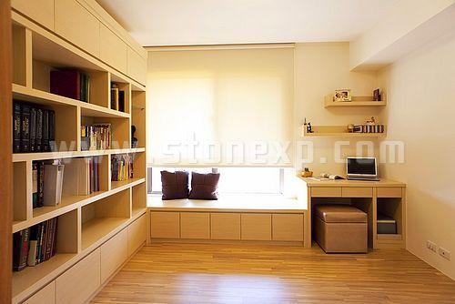 木頭地板,加上猶如一體成型的書(shū)柜、躺臥區(qū)及書(shū)桌,營(yíng)造和室般的開(kāi)放與舒適空間感。