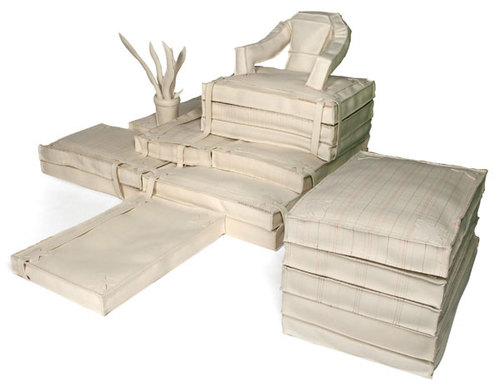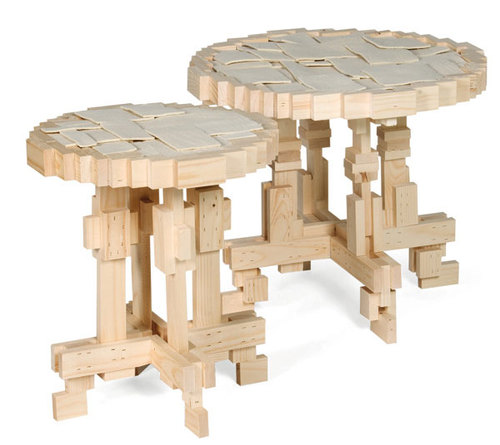 素色的布頭,零散的木塊和木片在設(shè)計(jì)師手中一樣可以變廢為寶。這一系列家具就是通過瑣碎的布頭和木塊重新拼合,進(jìn)而呈現(xiàn)出頗具個(gè)性的素色主義的家具風(fēng)格。