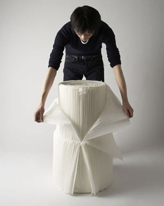 設(shè)計(jì)師的靈感來(lái)自生活,將折疊面料捆在一起成圓柱形就變成了這個(gè)“白菜椅子”,特別的設(shè)計(jì)令人欣喜。