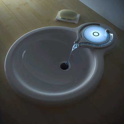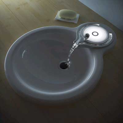 Smith Newnam設(shè)計的這個特別的水龍頭是將“漣漪”這個概念融入水龍頭的設(shè)計,在傳統(tǒng)的水龍的位置用一個下面裝置有LED燈的面板來取代,水流+LED燈光的映襯,一圈圈的漣漪效果再加上窗臺上閃爍的燭光肯定能讓浴室瞬間浪漫起來……是個比較精彩的概念設(shè)計.利用面板上的鋼球來控制水和其溫度.