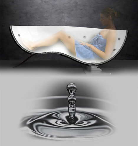 這款可以直立的浴缸或許可以滿足你的需求。它的一邊被固定在一個轉(zhuǎn)軸上,因此不用的時候,可以將它直立起來靠著墻壁,從而達(dá)到節(jié)約浴室空間的目的。另外,這款浴缸的內(nèi)壁設(shè)計還可以更好的貼合人體的曲線,從而為使用者提供更為舒適的體驗。