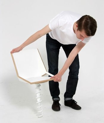 這是一把有十條腿的椅子,要是斷個(gè)幾條腿,椅子照樣還是能正常工作。其還有一個(gè)主要的功能那就是“搖椅”,不過它不能與傳統(tǒng)的搖椅那樣舒服的擺動,每到一個(gè)角度會停格,想用它來享受搖椅的功能,那只能讓兩條腿受累。