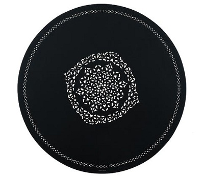 AZRA。黑白搭配的AZRA地毯,由PVC材料制成,東方神秘氣息十足。圖案似霧氣升華的結晶物“凝花”為靈感源泉。有圓形和矩形可供選擇。