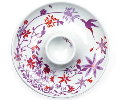 TABLE STORIES COLLECTION.錯綜復雜的蔓生植物和色彩繽紛的花卉圖案似乎已成為大牌設計師Tord Boontje的個性標識。小作品蛋容器也出手不凡。運用科技手段,他將他自己的童話世界栩栩如生地搬到了人們的餐桌上。這個系列另外還出品盤、杯、燈、玻璃器皿及桌布,部分產品還有限量鉑金版出售。