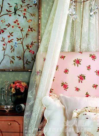 如果你覺得床頭柜上放臺燈、蠟燭、鮮花,以及在墻上掛畫之類的床頭裝飾基礎(chǔ)法則都不夠浪漫,那么,試試看為你的床頭披上一襲白紗。
