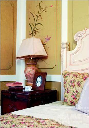 屏風也可以用于床頭裝飾。在經(jīng)過作舊處理的鐵藝床床頭后面放一架煙青色嫩黃碎花圖案屏風,不僅柔化了床架的質(zhì)地和造型帶來的中性視覺感受,而且還利于遮擋窗外繁雜事物,避免分心。