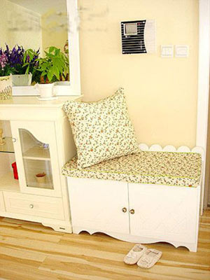 我們家本身的的結(jié)構(gòu)是錯層的,一開門就是客體和餐廳兩大個廳連著,就算是錯層了,根據(jù)我們家的實際尺寸設(shè)計了這個鞋柜,但是自己家的跨度比較大,如果單單一個效果不好,于是我自己又設(shè)計了這個兩級的鞋柜,上面的尖角小柵欄我覺得不太安全,于是換成了半圓的小柵欄,木工師傅做得淌汗阿,面板上還讓他們鏤出了菱形的花紋。