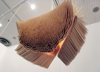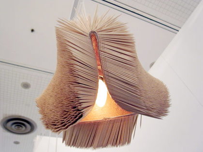 牙簽除了用來剔牙,做成牙簽燈也同樣特別。在09紐約設(shè)計(jì)周,Daisuke Hiraiwa展示了這款牙簽燈,要用多少牙簽啊~看著那么多尖尖的牙簽頭,除了震撼還有一絲害怕。