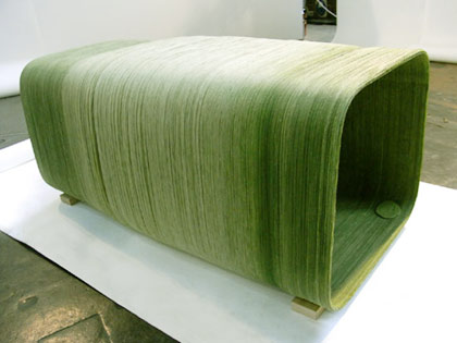 在今年的DMY柏林國(guó)際設(shè)計(jì)節(jié)(6月3日至7日)上,奧地利設(shè)計(jì)工作室Mischer‘traxler由Katharina Mscher 和Thomas Traxler組成。他們的作品tioat系列的凳子和臺(tái)燈,它們的外殼是用黏膠絲做成,色彩上就像在闡釋太陽光在一天之內(nèi)的變化。