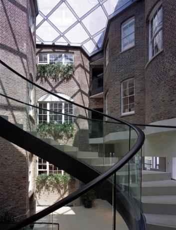 該建筑坐落于倫敦的商業(yè)專區(qū),吸引著來自世界各地的客人。該建筑的地板,門窗,以及樓梯的裝飾均采用凱德比石灰?guī)r。波特蘭石也被大膽的運用于地板和樓梯的裝飾。