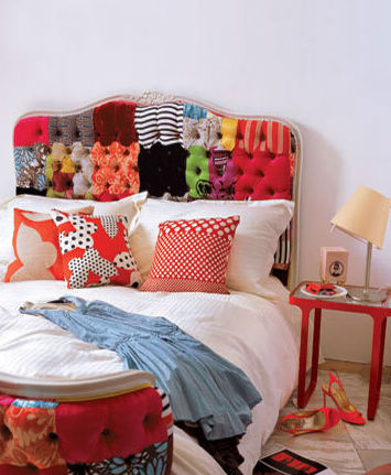 明艷的拼接面料個性十足,純白色的棉質(zhì)床品柔和了夸張的色彩,圓點、抽象圖案、濃烈的色彩在大面積留白中,平衡了繁復(fù)與簡約兩種氣質(zhì)。
