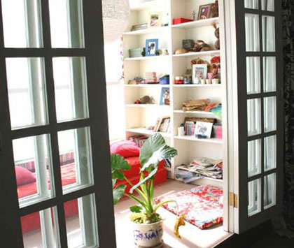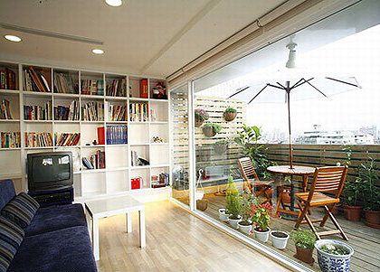 兩居室一般不設(shè)專門的書房,其實(shí),只要稍加改造,就可以把陽(yáng)臺(tái)變成一間雅致書房。將書柜設(shè)置在陽(yáng)臺(tái)一邊,另一邊擺上一張?zhí)僖巍T陉?yáng)光明媚的午后,慵懶地閑坐于藤椅之上,一杯咖啡,一本小說(shuō),靜靜感受時(shí)間的悄然流逝。對(duì)于整日疲于奔波忙碌的都市人們來(lái)說(shuō),這樣的午后不失為一種美的享受。