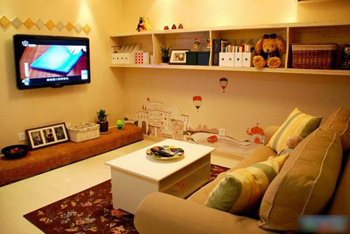 客廳墻壁上特意打造的收納柜,非常方便實(shí)用