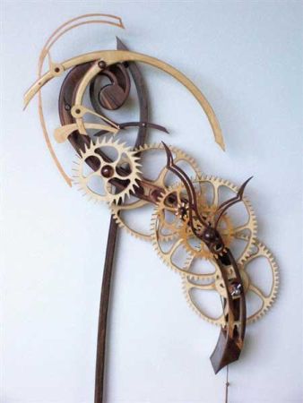 設(shè)計(jì)師經(jīng)過(guò)精心構(gòu)思,采用各種木頭作為原料,配合齒輪裸露的造型,使得這些鐘表呈現(xiàn)出十分原始的狀態(tài)。其中一些稍微復(fù)雜的鐘表不僅可以顯示時(shí)間,還可以指示日期、月份、星期等內(nèi)容。您不妨從這位設(shè)計(jì)師的網(wǎng)站上購(gòu)買(mǎi)這些鐘表的詳細(xì)制作圖紙,自己動(dòng)手做一個(gè)。