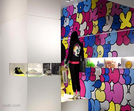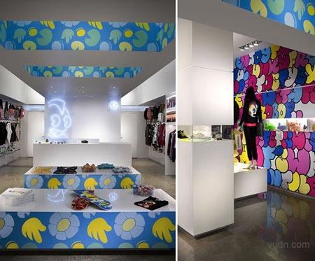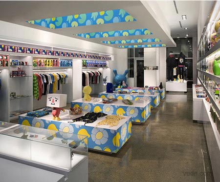 設(shè)計(jì)結(jié)合了大膽的圖形模式與簡(jiǎn)單的顯示器,玩具和服裝。機(jī)器人店鋪設(shè)計(jì)所需要的東西是簡(jiǎn)單而新鮮的,現(xiàn)代的。在每家商店,規(guī)模較小的貨架上需要玩具,以及存儲(chǔ)領(lǐng)域和服裝展覽。定制展柜,固定裝置,地板,指示牌和圖形被納入整個(gè)跨度的項(xiàng)目。