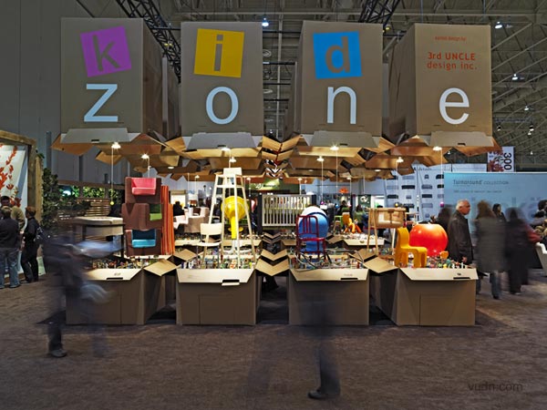 2007室內(nèi)設(shè)計展覽上的KIDZONE全新歐美兒童品牌展區(qū)展示設(shè)計。巧妙地運用色彩、形象、線條結(jié)構(gòu)去開啟兒童童感知之門。
