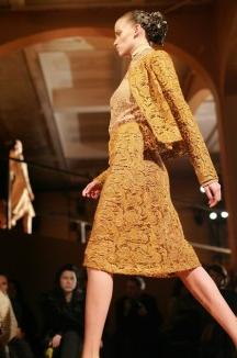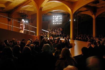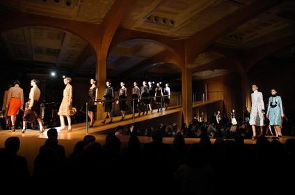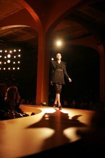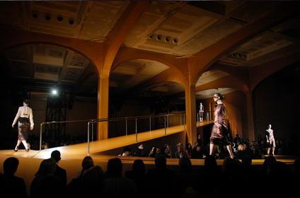 PRADA的08秋冬女裝的展示會場跟男裝的相差無幾,只是模特兒們所走的路由原來長方形拼起來的男士大道,變成了一條平整的小路。展會采用枯葉黃色作為主色,凸顯出了成熟女性那恬靜中散發(fā)出了的氣質(zhì),舉止上表現(xiàn)出來的優(yōu)雅。