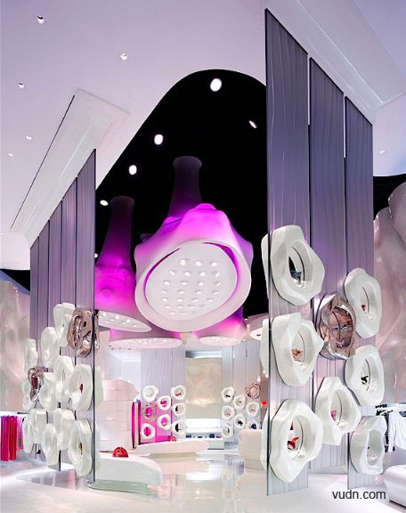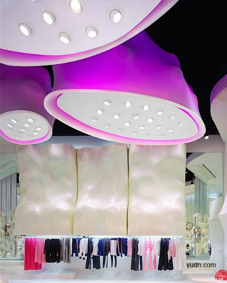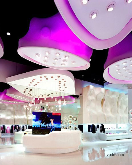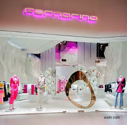 Fornarina服裝店由意大利設(shè)計(jì)師Giorgio Borruso提供設(shè)計(jì),主要特點(diǎn)是利用商店的內(nèi)部照明燈具來(lái)點(diǎn)燃織品燈具從而創(chuàng)造了Eventscape效果。