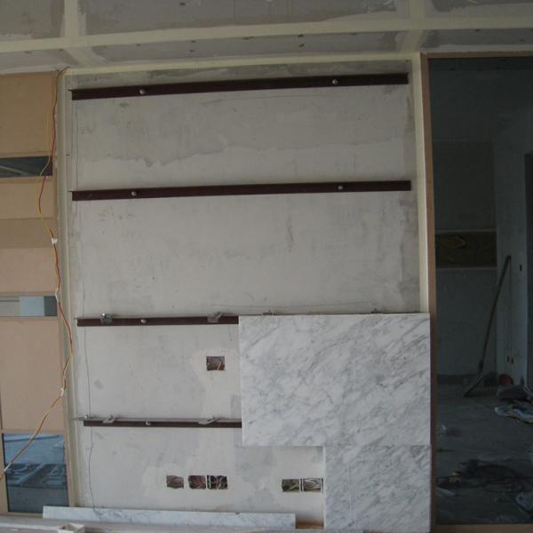 今天特來說說以實例來展示大理石背景墻的安裝過程,本案的電視背景墻是中花白大理石做成的,它有著冰清玉潔之感,清爽而不失穩(wěn)重。下面看看具體的安裝過程吧