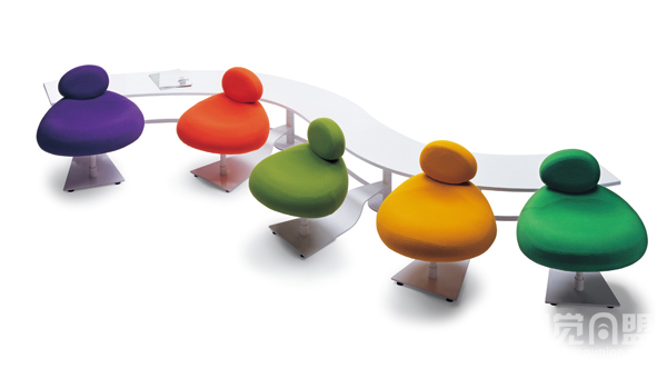 獨(dú)特之處還在于可360度旋轉(zhuǎn)的座墊設(shè)計(jì),與直線、弧線型基板的設(shè)計(jì),可根據(jù)空間的需要隨意組合和拼裝,增加辦公環(huán)境中人與人之間交流的親和性,給人們帶來輕松愉快的交流體驗(yàn)。同時(shí)改變產(chǎn)品材料的運(yùn)用,使此產(chǎn)品可以適用于公共,辦公,家居空間等。工藝采用低發(fā)泡聚氨酯雙硬度發(fā)泡技術(shù),鋼琴漆、亞克力、不銹鋼板貼面,用于戶外可采用滾塑技術(shù)與水泥等材料的組合與搭配,色彩選擇多樣,親近自然的樸實(shí)回歸。產(chǎn)品的家族系列化延伸性大,可拓展性十分豐富。
